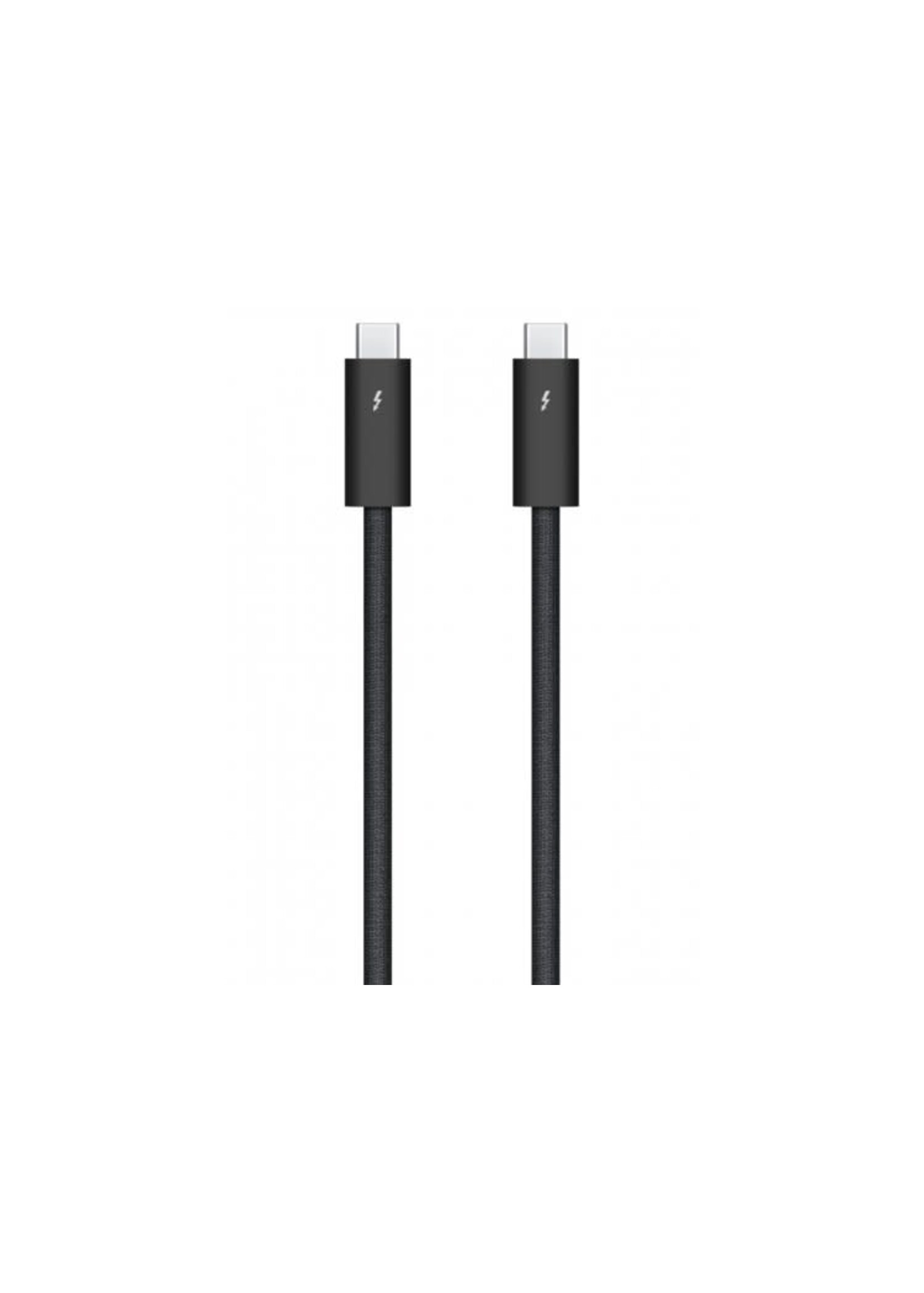 Featuring a black braided design that coils without tangling, the Apple Thunderbolt 4 Pro Cable supports data transfer rates of up to 40 Gb/s. There is a reversible USB Type-C male connector on each end. Otherwise, it supports up to 10 Gb/s via USB 3.1 standards. Additionally, it can be used to connect both DisplayPort (HBR3 support) and USB Type-C displays, charge devices with up to 100W of power delivery, and daisy-chain up to six Thunderbolt 3 devices.